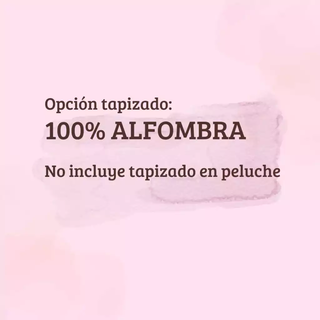 - Alfombra: Tapizado 100% en alfombra, con pompones en peluche.