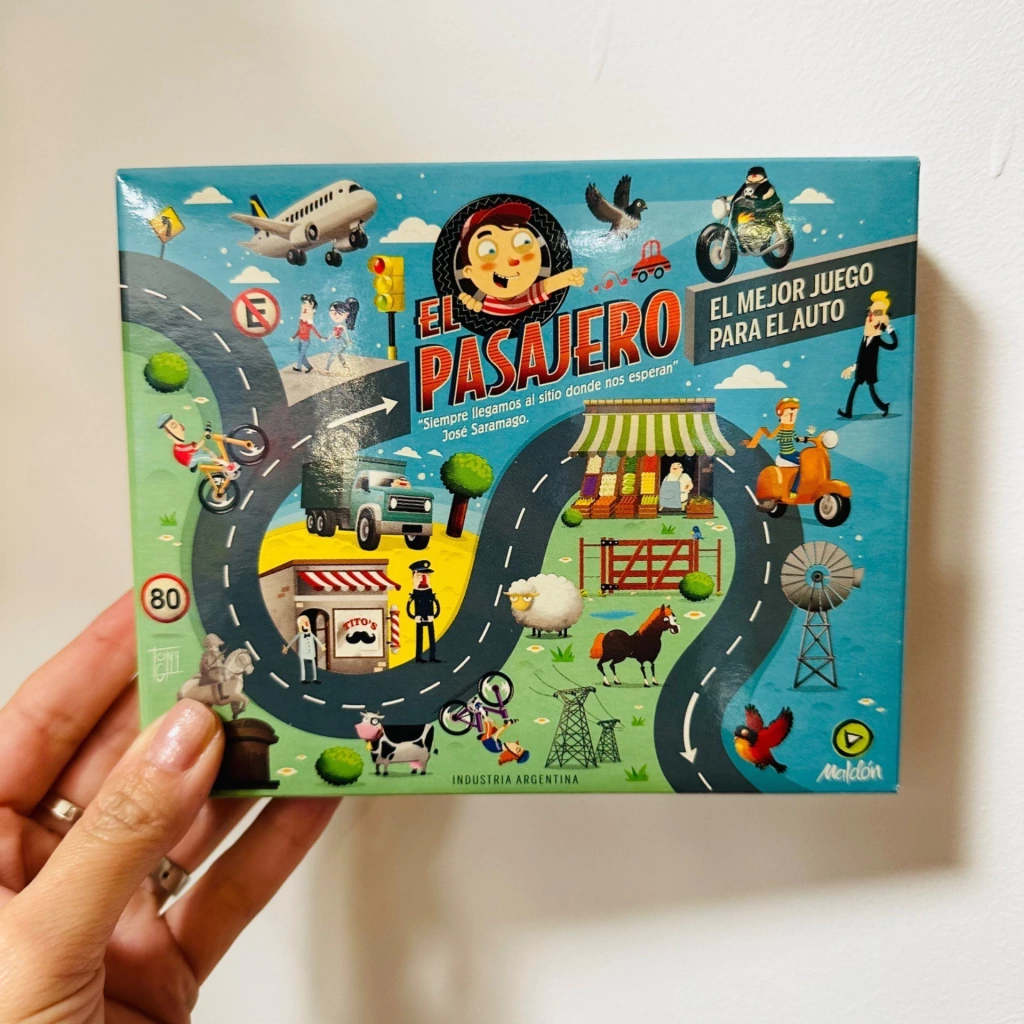 El Pasajero es el juego perfecto para tener en la guantera del auto. Consiste en dos mazos de 40 cartas, uno para la ruta y otro para la ciudad, con ilustraciones que los chicos deben encontrar mirando a través de la ventana. Se puede jugar solo, en equipos, o entre todos los pasajeros. El mejor antídoto para los viajes largos y el “¡¿cuánto falta para llegar?!”.