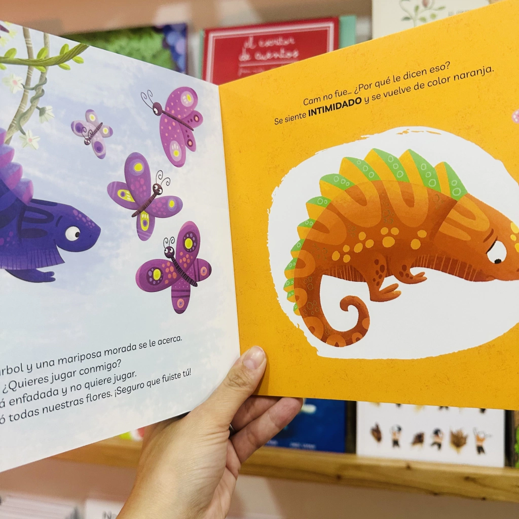 Las simpáticas y coloridas ilustraciones ayudarán a los pequeños lectores a meterse en la historia y comprender con mucha más facilidad en qué consiste cada sentimiento de los que se detallan. Además, como el protagonista es un camaleón, cada emoción se asocia con un color distinto, facilitando su memorización.