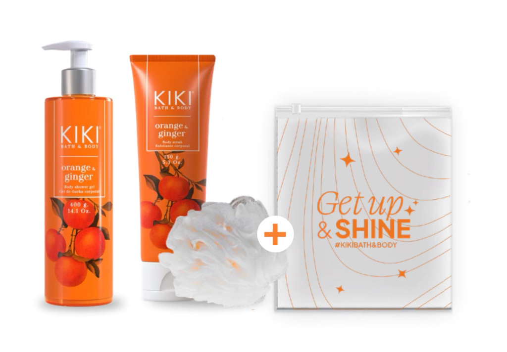 Orange & Ginger Body Shower Gel + Orange & Ginger Body Scrub + Esponja + Neceser de regalo🍊🫚🍊ORANGE & GINGER🍊🫚🍊