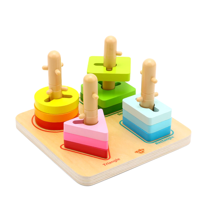 Sus coloridas piezas deben ensartarse en sus ejes, con una pequeña dificultad que permite al niño pensar y resolver para lograr ensartar la misma. Estimula el pensamiento lógico matemático, la motricidad fina y la concentración. Colabora en el aprendizaje de niños con disminución visual.Especial para adultos mayores, y para utilizar en procesos de rehabilitación.Marca: Tooky toys