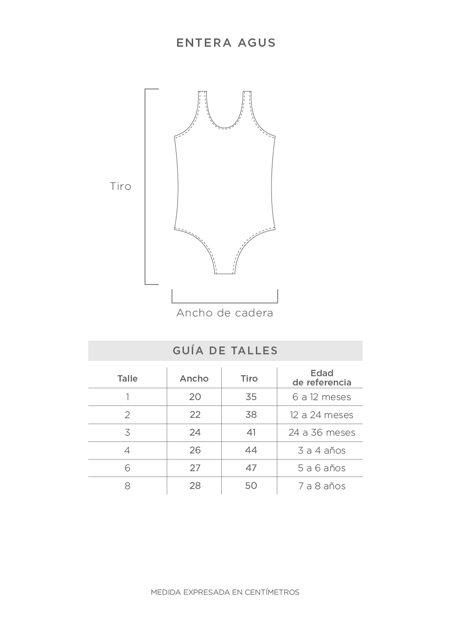 CONSEJO: Te recomendamos que midas una malla que ya tengas y la compares con la guia de talles de ANITA LUQUE. Las edades de referencia van a depender mucho de la contextura de cada nena, asi que lo mejor va a ser que te fijes en los centímetros. Cualquier duda que tengas escribinos que te ayudamos!
