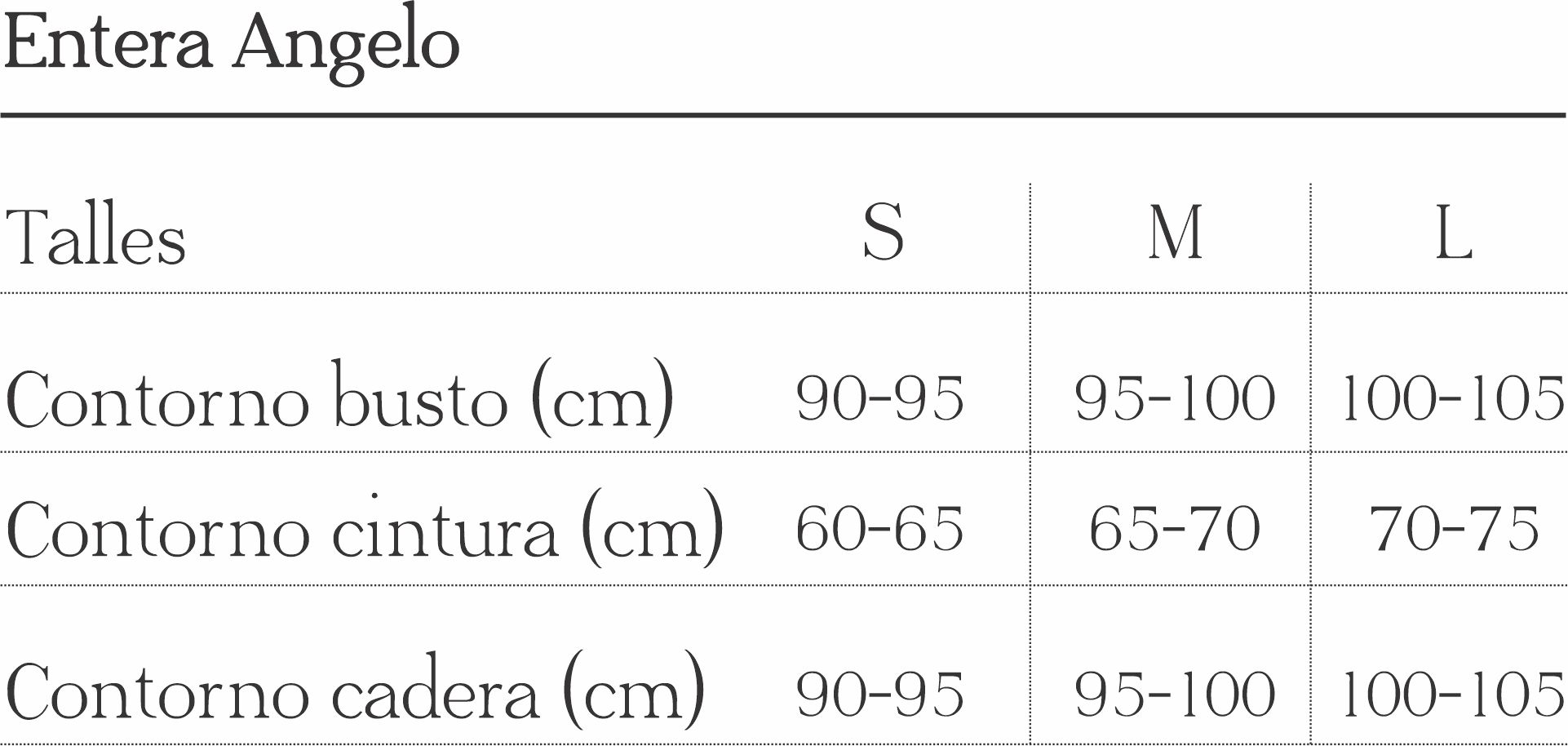Entera escote en V con recortes laterales en el cuerpo para generar entalle. Calce media cola.