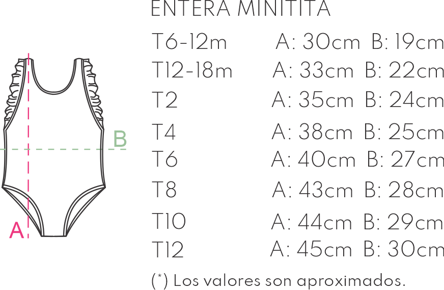 Mallita enteriza mini, con volados en los breteles y con el detalle de moño como terminación atrás.