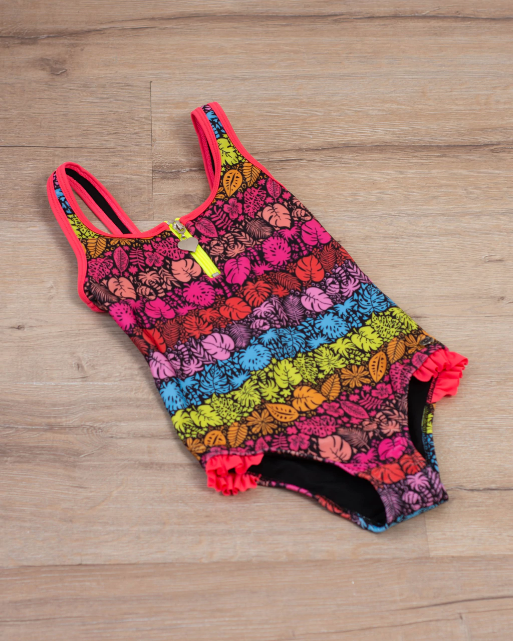 Descubre la malla entera "Tropical", diseñada especialmente para las más pequeñas de la familia. Confeccionada en tricot y con forrería de poliamida a tono, esta prenda es ideal para disfrutar del verano con un encantador diseño tropical que resalta su frescura.