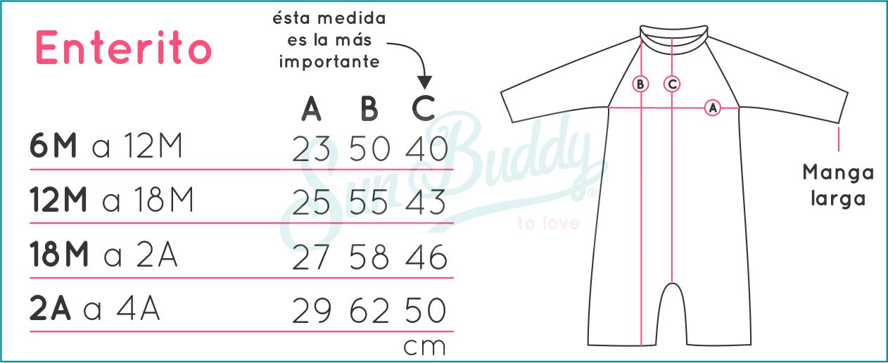 · Talles 6m a 12m / 12m a 18m / 18m a 2A: con cierre delantero DESMONTABLE para poder colocarlo fácil y rápido. Talle 2A a 4A: con cierre delantero FIJO. Cartera interna a lo largo de los mismos para asegurar el máximo confort.