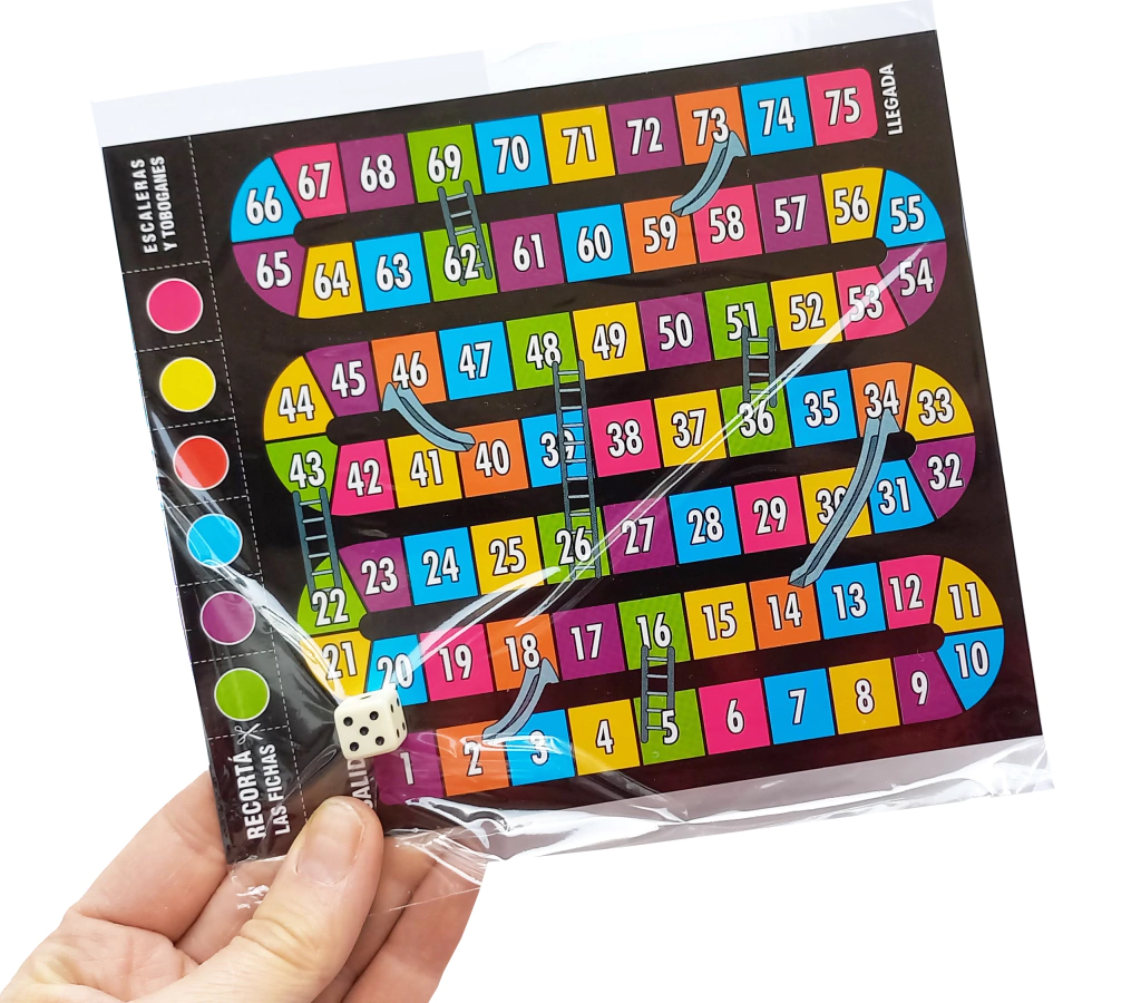 Atención, las escaleras suben y los toboganes bajan. El primero que completa el recorrido, resultará ganador.