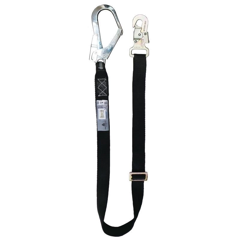 Cabo de posicionamiento regulable en cinta plana, con mosquetón de 16mm y 55mm de abertura