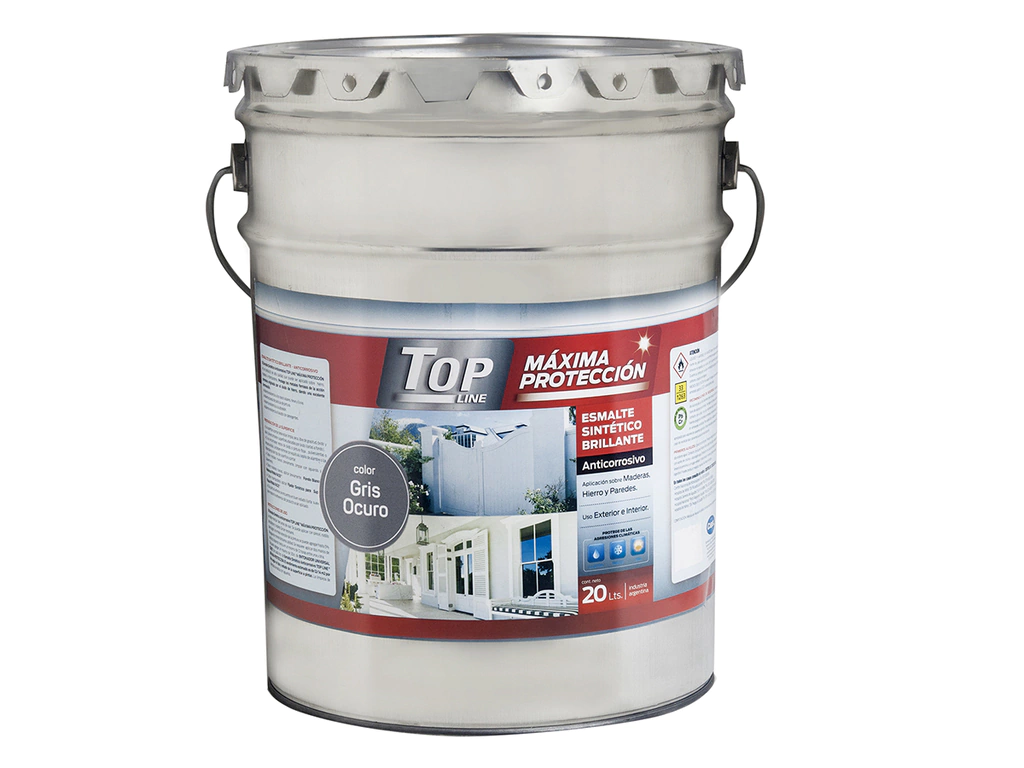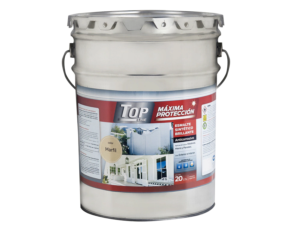 Top Line Brillante es un esmalte sintético de acabado brillante, formulado en base a resinas sintéticas y pigmentos. Es ideal para proteger y decorar superficies de metal, madera o mampostería; en ambientes interiores o exteriores. Su excelente pintabilidad y nivelación facilitan su aplicación. Su película es resistente al frote, al lavado y a la agresión de los agentes climáticos adversos.