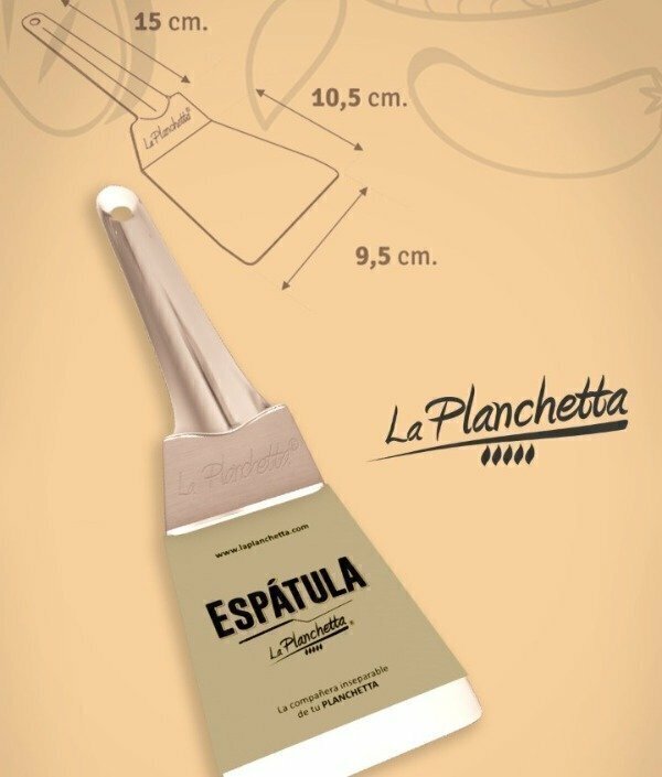 Espátula La Planchettera de acero inoxidable, mango anatómico y ángulos de 90º para facilitar llegar al borde de cualquiera de tus planchettas. Uso profesional u hogareño.