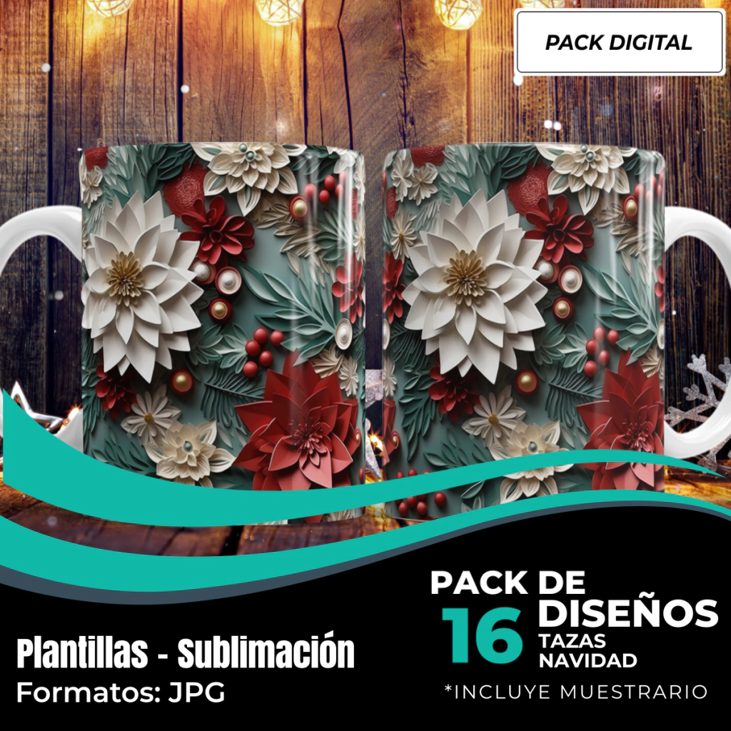 ❤️💚16 Diseños Tazas 3D Navidad❤️💚
