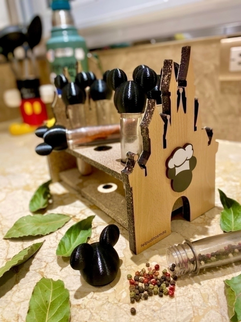 Descripción⇩ESPECIERO MOUSE HAYA (Beige)Viene con 6 tubos contenedores con tapa a rosca.Material MADERA y plásticoMedidas: 20cm de alto - 26cm de ancho - 15cm de profundidad