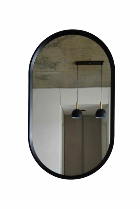 ESPEJO REDONDO CON MARCO COLOR NEGROAlto: 61 Cm - Ancho: 35,5 CmProfundidad: 3 CmGancho para vertical en el vértice superior - Gancho para horizontal en 30,5 Cm
