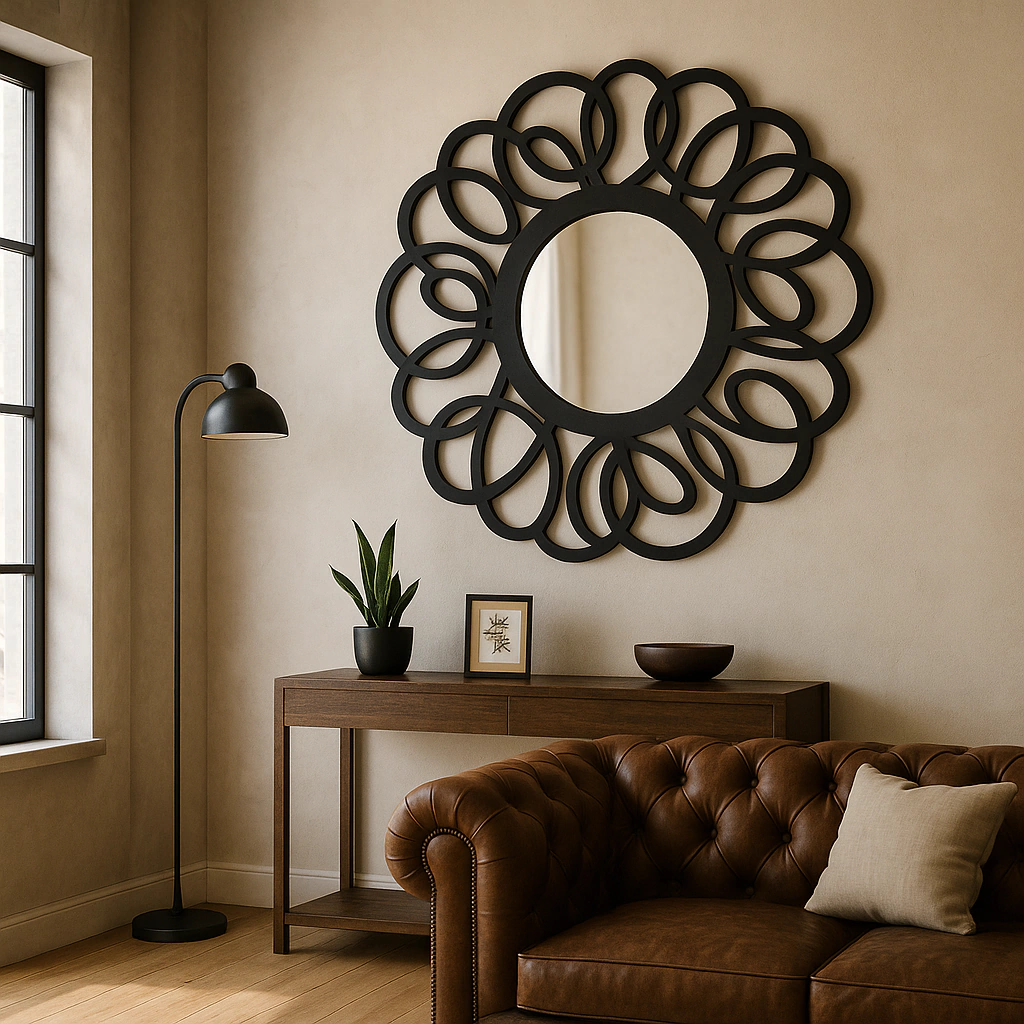 Cuadro Espejo para decorar la pared, Newall hecho de acrílico combinado con madera enchapada.