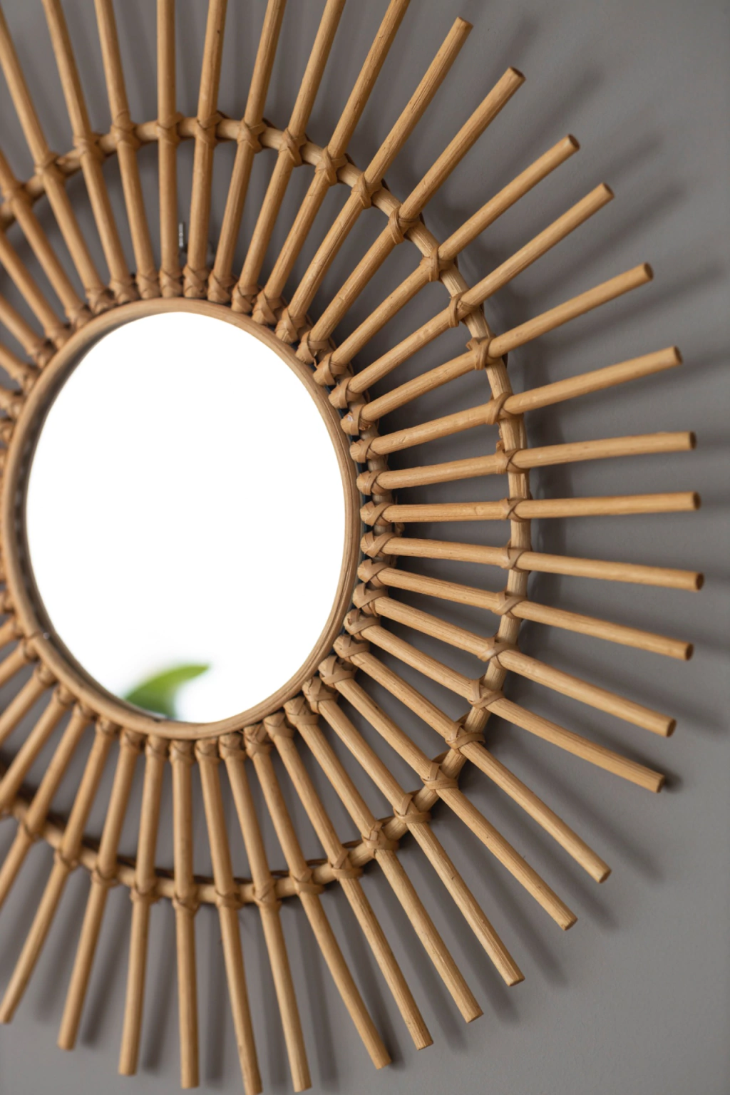 DESCRIPCIÓN:Espejo de ratán.MEDIDAS APROX:70cm de diámetro, 24cm de espejo y 3 cm de profundidadIMPORTANTE: el envío de este producto está disponible SOLO para CABA y GBA.