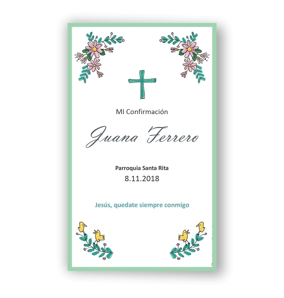Personalizá el texto de cualquier estampita aclarándolo en "comentarios", al finalizar la compra.
