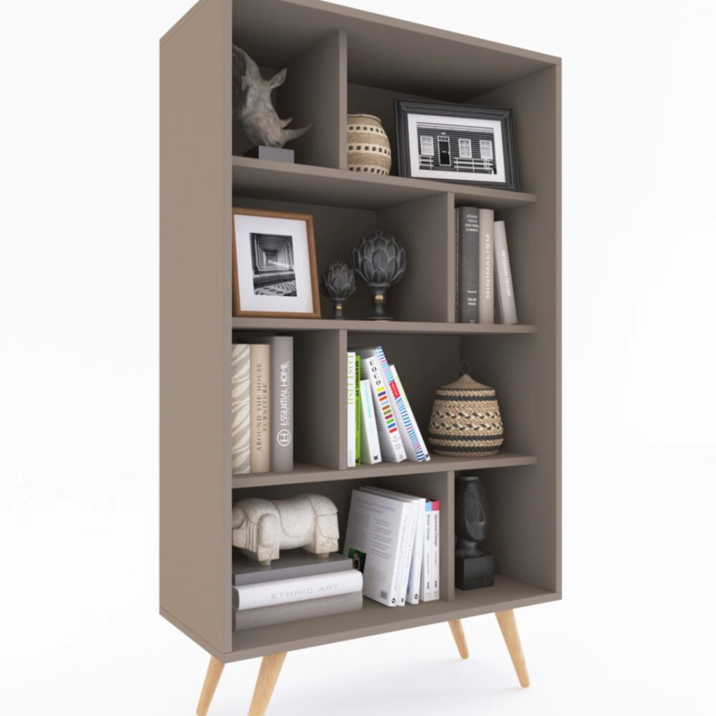La biblioteca escandinava de 4 estantes es una mezcla perfecta de funcionalidad y belleza. La robustez de la melamina y la madera maciza en las patas te invitan a exhibir tus libros y recuerdos con estilo.
