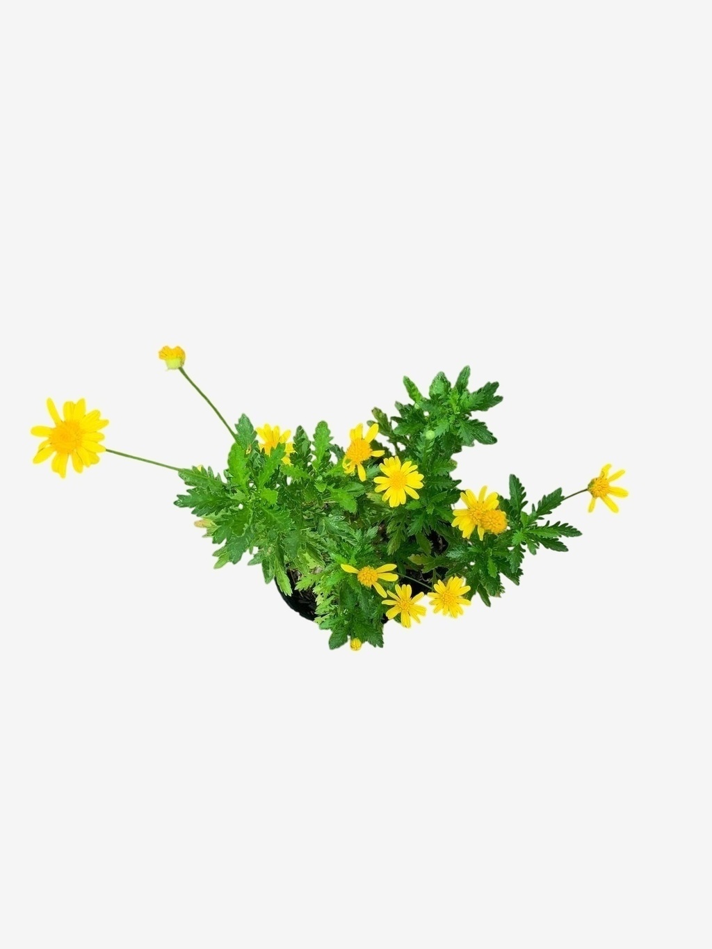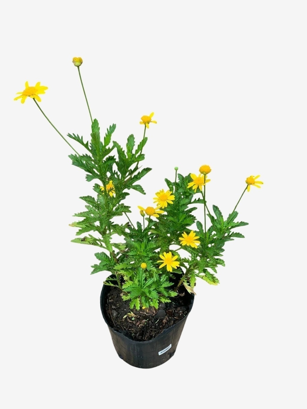 La primer imagen es a modo ilustrativo, las secundarias corresponden a la planta real. Las características de las plantas pueden variar según la época del año en la que se encuentre.Nombre científico: Euryops pectinatus verdeUsos: formar macizos y grupos de flor.Follaje: perenne.Riego: moderado.Exposición: pleno sol.Altura: hasta 1,5 m.Floración: durante casi todo el año, excepto en verano.Color de las flores: amarillas.NOTA:Mata leñosa redondeada de hasta 1,5 m de altura, de atractivo follaje verde y bella floración invernal
