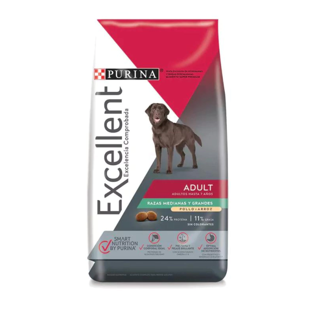 Excellent produce alimentos centrados en las necesidades únicas de tu mascota, brinda una nutrición específica y eficaz, y lo ayuda a convertirse en su mejor versión.Tu mascota siempre saludableEllos son parte de la familia y nos regalan su compañía y su cariño. Para que se mantengan sanos y fuertes, una alimentación balanceada es esencial. Brindale a tu perro los nutrientes que necesita para que pueda correr, saltar y jugar todo el día.Beneficios del alimento secoLa mayor ventaja de la comida seca para mascotas es que se puede almacenar por mucho más tiempo sin que se deteriore, y evita la aparición de hongos o bacterias. Además, este tipo de alimento ayuda a eliminar el sarro y a retrasar la formación de la placa dental con el proceso de masticación y trituración.