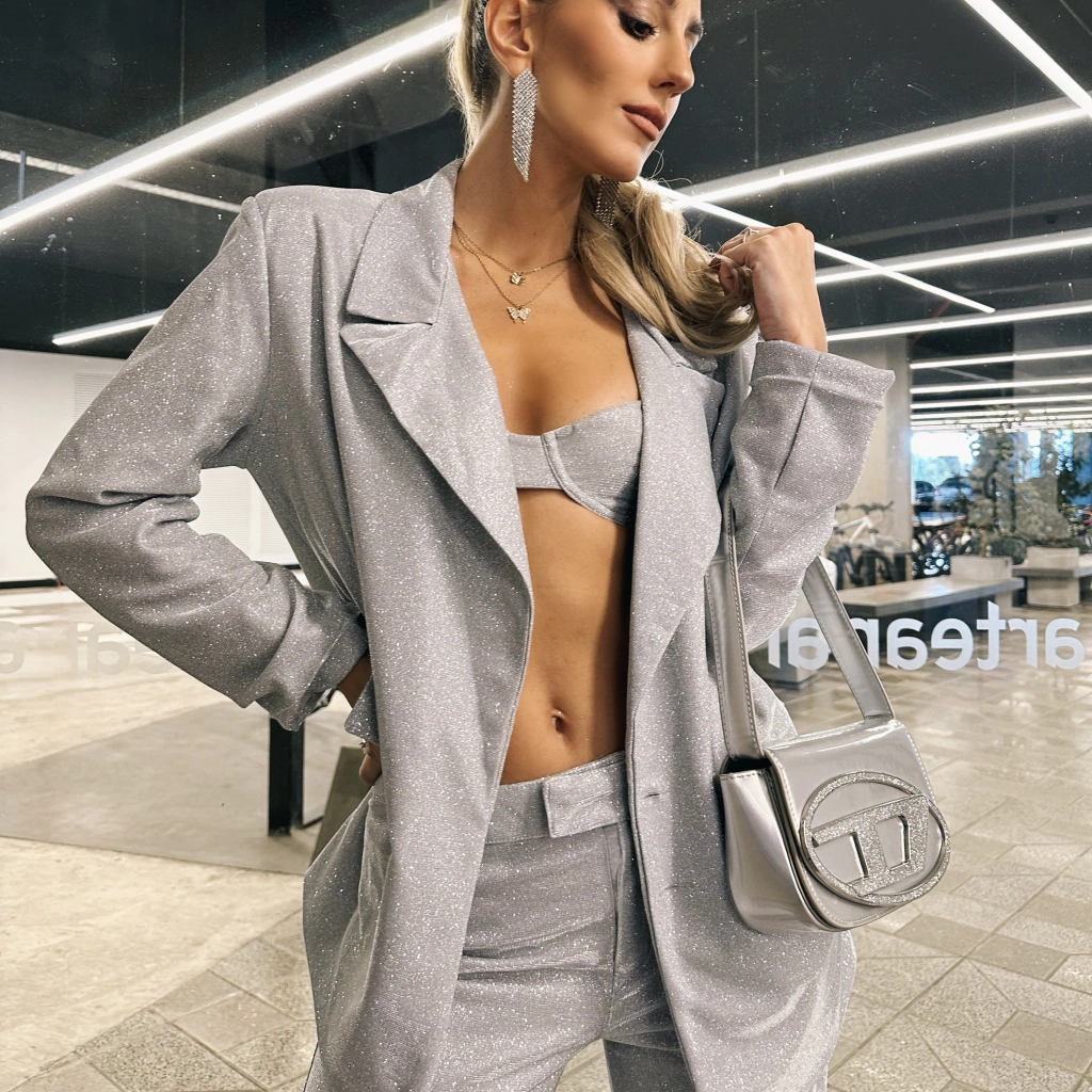 * * Con la compra del blazer y pantalón exclusive / o pantalón y corset exclusive te llevás el top silver de regalo para completar el outfit * *