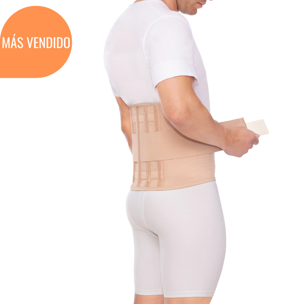 Faja lumbar ballenada, para mujer y hombreTambién podés leer:5 fajas lumbares para el dolor de espalda y columna (VIDEO EXPLICATIVO)Código del producto:F039-28Talles de fajas lumbaresPara saber que talle te corresponde debes medir la circunferencia de tu cintura.Talle 0: circunferencia de cintura desde 55 cm hasta 75 cm.Talle 1: circunferencia de cintura desde 65 cm hasta 85 cm.Talle 2: circunferencia de cintura desde 75 cm hasta 95 cm.Talle 3: circunferencia de cintura desde 85 cm hasta 115 cm.Talle 4: circunferencia de cintura desde 95 cm hasta 125 cm.Talle 5: circunferencia de cintura desde 105 cm hasta 135 cm.Talle 6: circunferencia de cintura desde 115 cm hasta 150 cm.Altura de 28 cm.¿Qué es una faja lumbar ballenada?La faja lumbar es un tipo de soporte gradual, que cumple la función de asistencia a nuestras articulaciones, ligamentos y grupos musculares, para ayudarte a superar una lesión y malestar o prevenir tensiones en momentos de mayor esfuerzo. Estabiliza, alivia sobrecargas y distensiones del cuerpo. Logra mantener una postura equilibrada mientras realizamos nuestras actividades diarias. El fortalecimiento de nuestro cuerpo y distintos tipos de terapia son las que ayudan a corregir la causa de una patología, mientras que la faja funciona de asistencia, ayuda, previene y brinda soporte.Te acompaña y brinda contención semi-limitando tus movimientos para que puedas seguir con tu día a día. Este diseño es uno de los más completos que podrás encontrar en soporte abdominal y sacro lumbar¿Cuándo usar una faja lumbosacra?Para recuperarte de una distensión, desgarro, contracturas, hernias discales, post operatorios, fracturas, malestares musculares, tendinitis e inflamaciones.Si buscas un diseño deportivo, conoce laFaja 4 varillas flexible lumbaroFaja 2 varillas flexibles lumbar.Ideal para andar, caminar, trabajar, levantar elementos pesados, conseguir una buena postura en la oficina, asistir a personas o los quehaceres diarios del hogar.¿Qué tan efectivo es un corset ballenado lumbar?Limita parcialmente los movimientos de flexión y extensión del raquis dorso lumbar, mejorar la postura de la columna. Patologías traumatológicas como lumbalgias secundarias a traumatismos o a movimientos repetitivos de la zona lumbar, hernias discales leves, antero y retrolistesis de grado moderado, distensiones musculares y ligamentarias de la zona lumbar. Recuperación de post operatorios o cirugías, malestares posturales, de cintura, fracturas, artrosis, contusiones, contracturas, desgarros, esguinces, dolores crónicos y lesiones musculares. Corrector postural.¿Cómo se usa la faja ballenada para columna?1. Ubicar la faja alrededor de la zona lumbar.2. Centrar las varillas en la espalda,3. Cerrar el abrojo en el medio del abdomen.4. Ajustar el cinto para ceñir la prenda al cuerpo.¿De qué está hecha la faja dorso lumbar?Material en elástico de mayor compresión, nivel de contención III (con el porcentaje de goma y densidad más alto para la correcta sujeción de los tejidos) y sobrebanda de soporte. Incluye 5 varillas posteriores. Costuras reforzadas. Cierre en abrojo regulable. Productos certificados por ANMAT e ISO9001. La particularidad de este modelo es el material en elástico de mayor densidad (nivel de contención III) , la inclusión de siete varillas metálicas de contención maleables según la necesidad de uso (les podes dar la forma que prefieras) y sobrebanda de sujeción para mayor soporte.Cuidado de una faja lumbarLavar con agua fría. No planchar. Secar a la sombra. Evitar contacto con cremas, detergentes, solventes y/o derivados del petróleo.ContraindicaciónPatologías que requieran resolución quirúrgica o que requieran mayor contención de la zona afectada.Recomendaciones :La altura de 20- 24 o 28cm dependerá de la zona a cubrir que desees. Para saberlo, medí los centímetros desde tu zona baja de sacro hasta el punto que precises. El diseño que elijas depende de tus preferencias, necesidades de uso y contención. Si deseas un modelo más flexible conoce el cod F039-24, un diseño con menor altura cod F039-20.Información importanteContacto: esperamos tu mensaje por Whatsapp al + 54 9 11 6228 0130 de Lunes a Viernes de 9 a 16hs o por mail a[email protected]para que Daiana responda todas tus preguntas.Envíos: si compras de Lunes a Viernes hasta las 14hs en CABA y GBA, recibís tu producto en el día. A todo el país por MercadoEnvios o Andreani. También te esperamos en nuestros locales de C.A.B.A y Zona Norte.Medio de pago: todas las tarjetas con hasta 6 cuotas sin interés o 10% de descuento por transferencia bancaria o efectivo en el local.