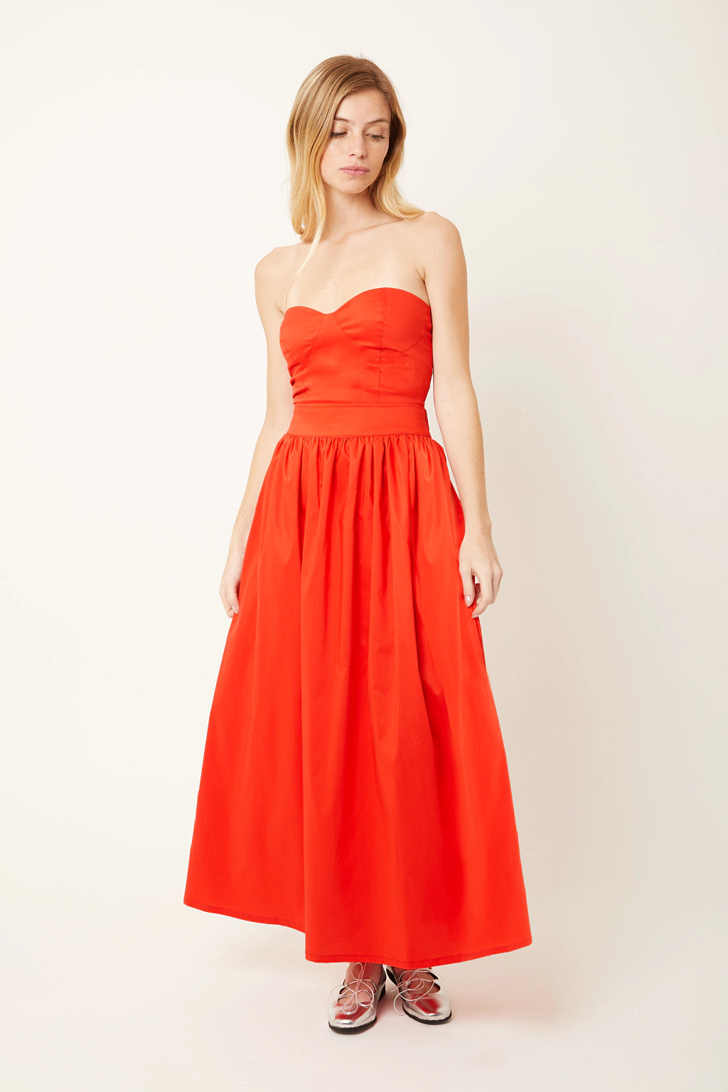 Falda larga, realizada en poplin. Posee bolsillos laterales y cierre invisible de acceso al costado. La falda es amplia y fruncida a la cintura, lo que hace que tenga gran vuelo. La cintura tiene elástico forrado en la parte trasera que facilita la adaptabilidad de talle. Ideal para combinar con strapless Helen, o blusa Sarah, o camisa Krall.Composición: 65% Tyar, 35% Ray.talle S: cintura 68a74cm, cadera 140cm /talle M: cintura 74a82cm, cadera 150cm /talle L: cintura 82a88cm, cadera 160Largo en todos los talles: 90cm