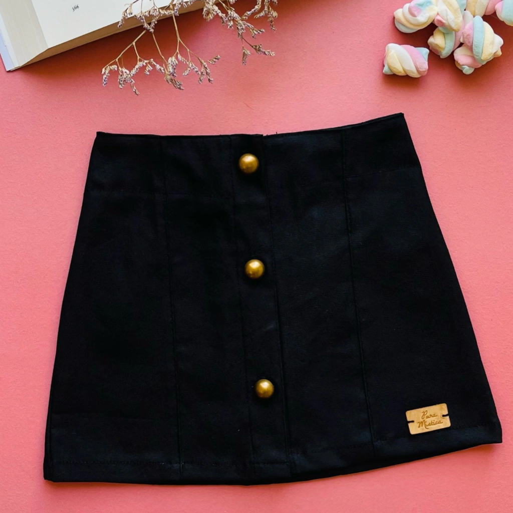 Nuestra falda IZAR es una de las prendas mas esperadas de esta coleccion! Clásica, confeccionada en jean elastizado color negro sólido, de textura muy confortable, abotonada al frente con botones bronce y con cintura trasera elastizada que garantiza calce perfecto y comodidad para tu peque. Por su tipo de tela, es una falda ideal para usar todo el año. Podes combinarla con la Blusa ROSALÍA, Remera LUPE o Remera ALYA Blanco y sumar la vincha Linea Puntilla Negro para armar este look soñado!