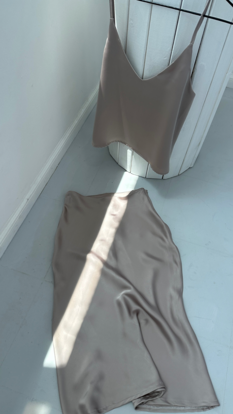 Falda Midi Six satén liso