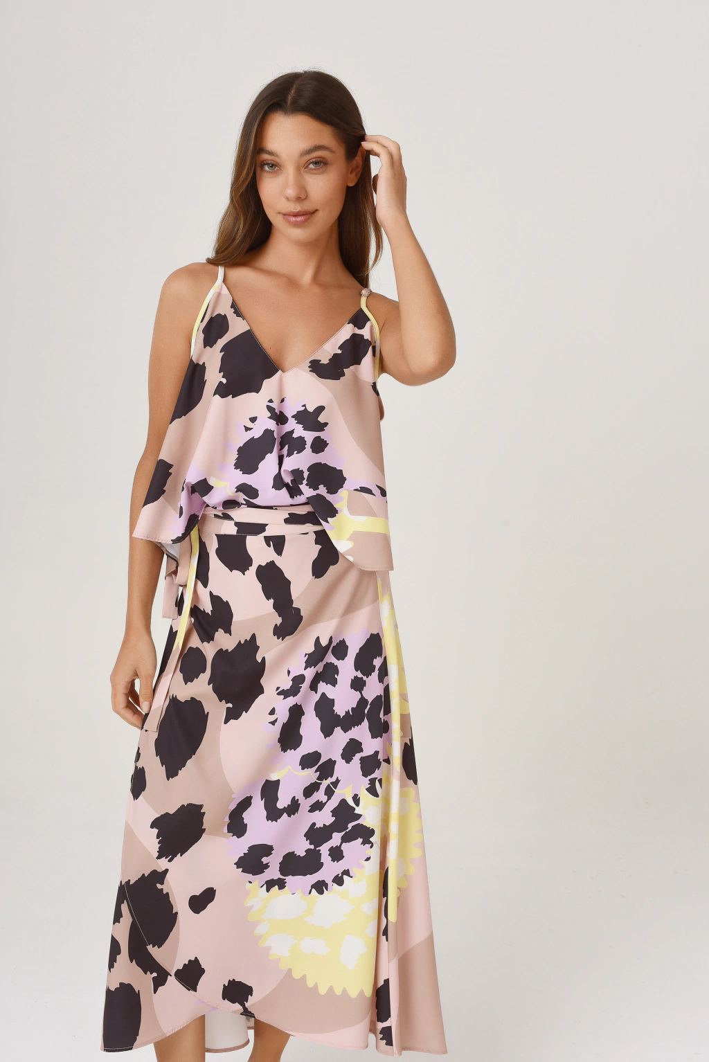 DESCRIPCIÓN:Ninguna otra prenda dice verano más que esta falda. Corte portafolio con tiras para ajustar y acomodarla a cada cuerpo. Es larga por debajo de las rodillas, con una presilla para un mejor ajuste en la cintura y con terminación redondeada en la parte inferior. Confeccionada en Crepe Ariana, con mucho vuelo y súper fresco para el verano.COMPOSICIÓN:95% Poliester, 5% Spandex.REFERENCIA DE MODELO:Vicky Talle S, Altura 1,62 87/62/90MEDIDAS:TalleAncho total de cintura:106 cmContorno cintura:72 cmContorno de cadera:120 cmLargo total:85 cmTalle MAncho total:110 cmContorno cintura:78 cmContorno de cadera:125 cmLargo total:87 cmELEGÍ EL LOOK COMPLETO:Musculosa Lima Cardos Tostado + Falda Ruiz Cardos TostadoCÓMO CUIDAR LA PRENDA:- Lavar a mano con agua fría y usar jabón neutro.- No pasar por centrifugadora y/o secadora, no retorcer.- Secar a la sombra.- Plancha suave/tibia.A TENER EN CUENTA:-La fotos son representativas.-El color puede variar según el dispositivo.-La diagramación de la estampa varía según la tizada y corte de la moldería.