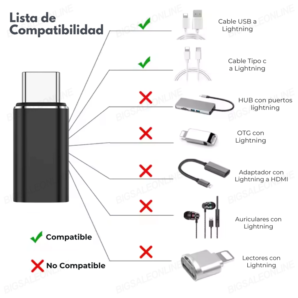 - Ideal para poder Cargar dispositivos con tus cargadores de cable Lightnin