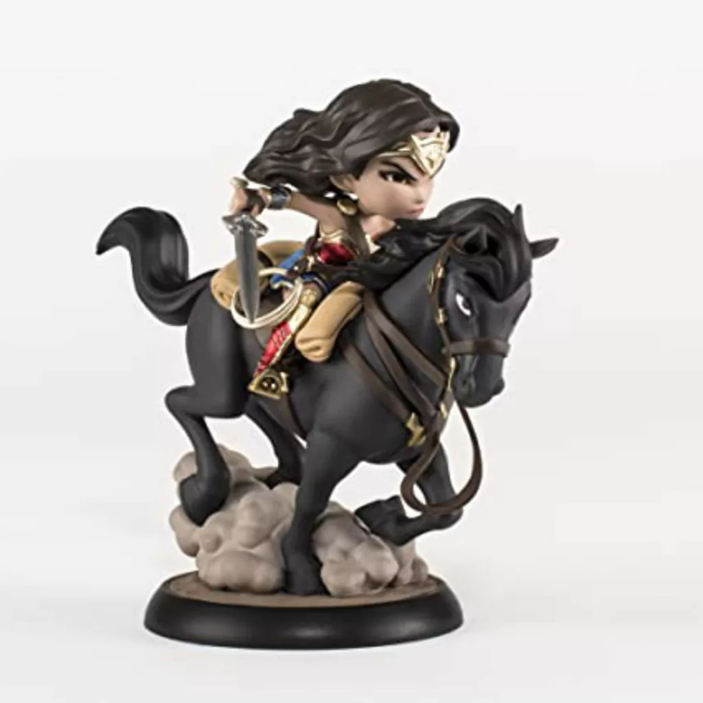 Figura Original Quantum Mechanics Q Fig Max, de la Colección DC Wonder Woman (The Movie) mostrando a Wonder Woman montando su caballo. Incluye base para ser expuesta. No te la pierdas!