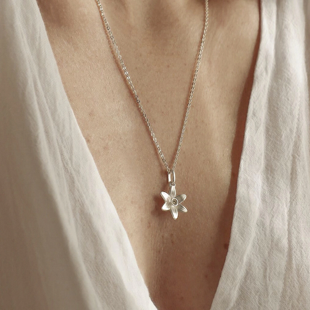 Colección "El Lenguaje de las flores"Cadena y dije realizados íntegramente en Plata 925.La cadena está especialmente diseñada para regularse en 4 medidas diferentes, 40cm, 45cm, 50cm y 55cm.Medidas de la flor 16mm de diámetroConocé más sobre esta colección haciendoclick acá