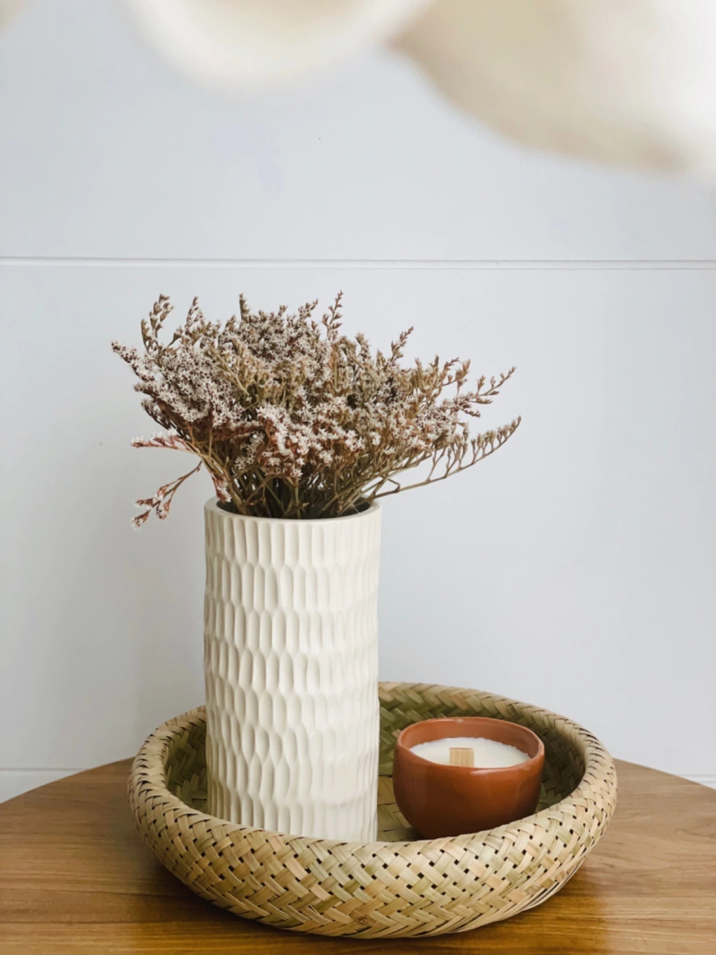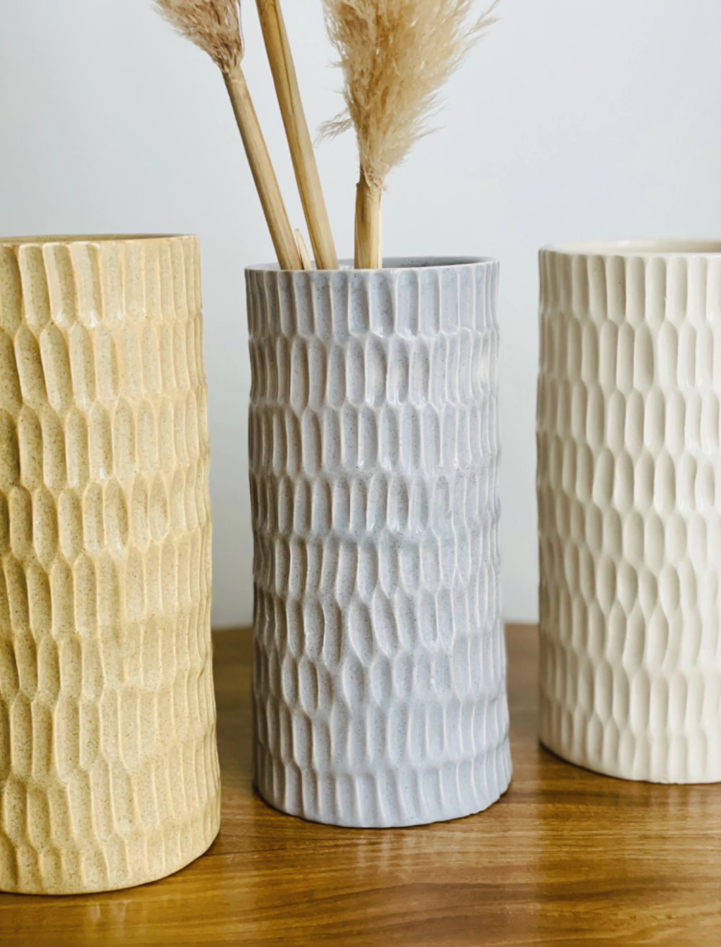 DESCRIPCIÓN:Florero de cerámica esmaltada con textura de escamas. Ideal para ramos naturales y secos.MEDIDAS APROX:10x22cmTRES COLORES DISPONIBLES:GrisArenaNaturalJaspeadoIMPORTANTE: el envío de este producto está disponible para TODO el territorio argentino