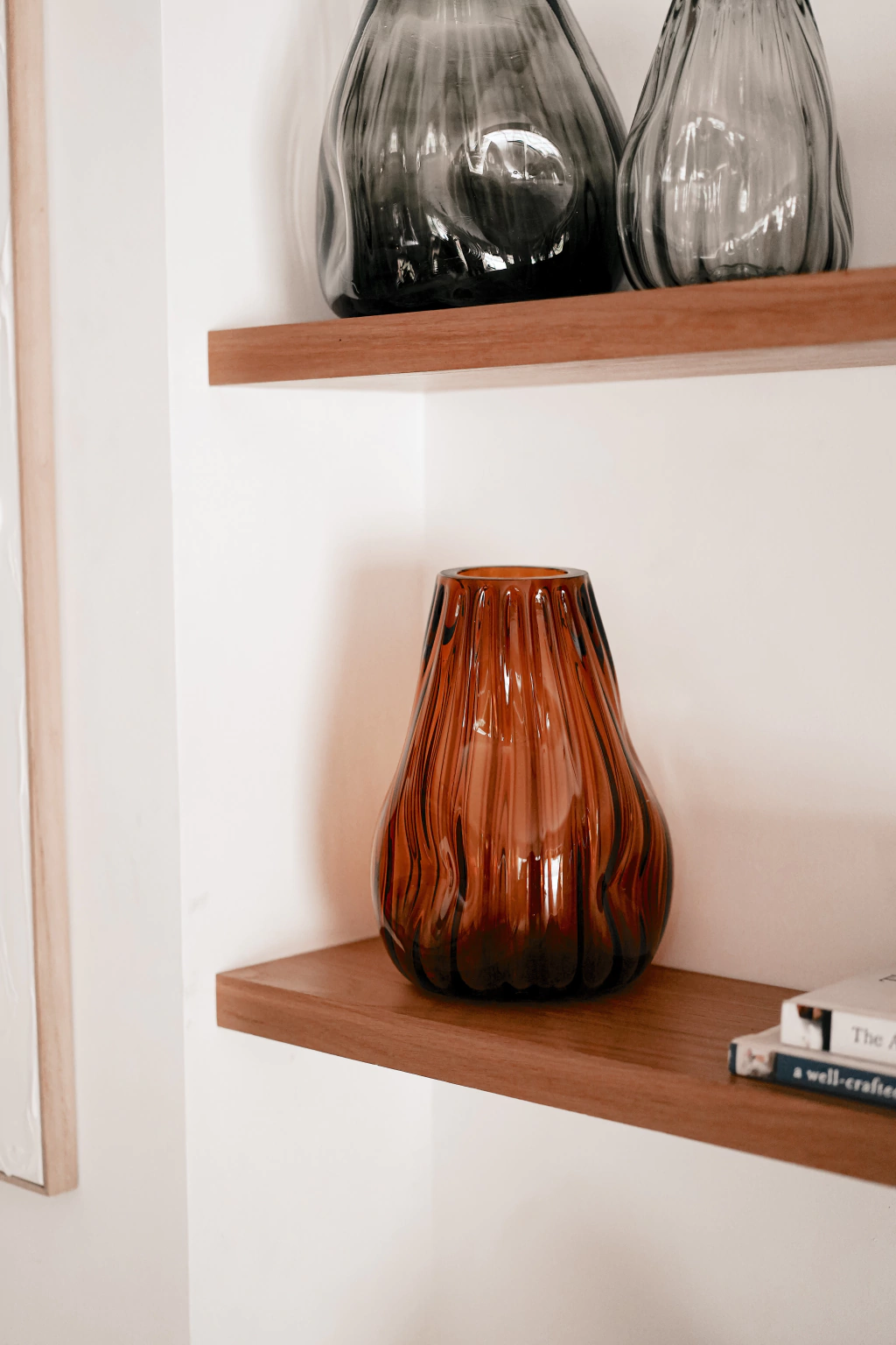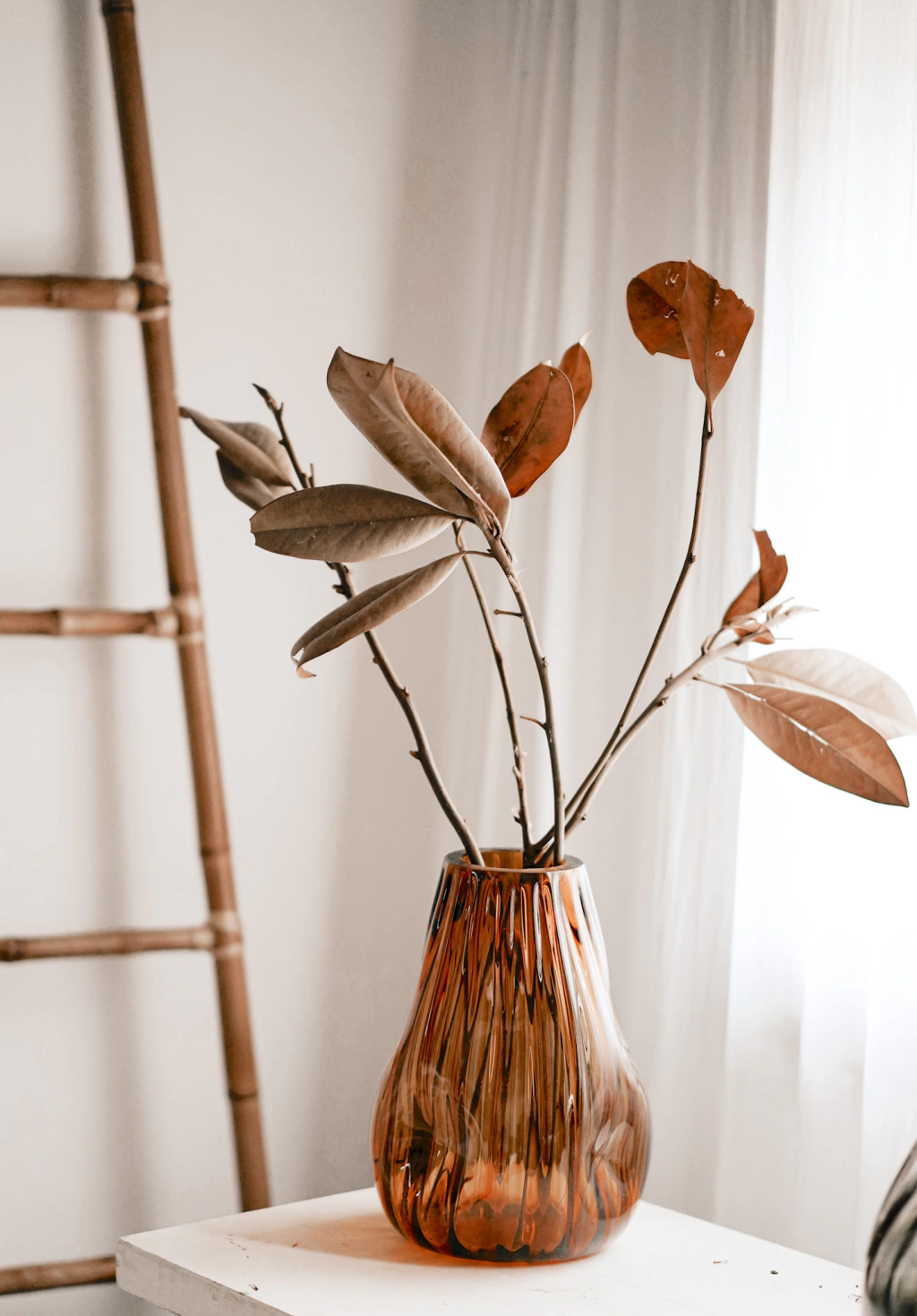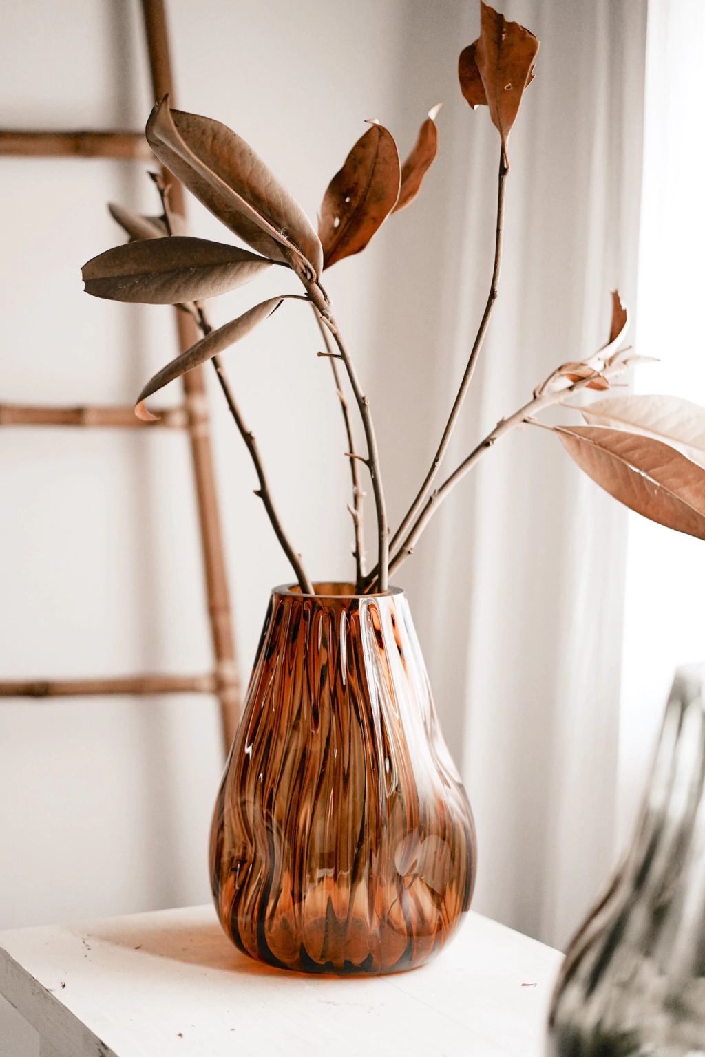 Florero CetaraFlorero en vidrio soplado color ámbarPara decorar mesas y/o bibliotecas con plantas o flores.