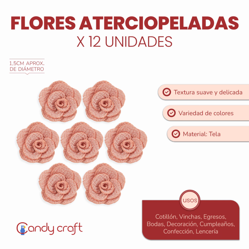 Medida  Diámetro: 1.5 aprox Material: Tela Cantidad: 1 paquete de 12 unidades del mismo color. Uso: Cotillón, Vinchas, Egresos, Bodas, Decoración, Cumpleaños, Confección.