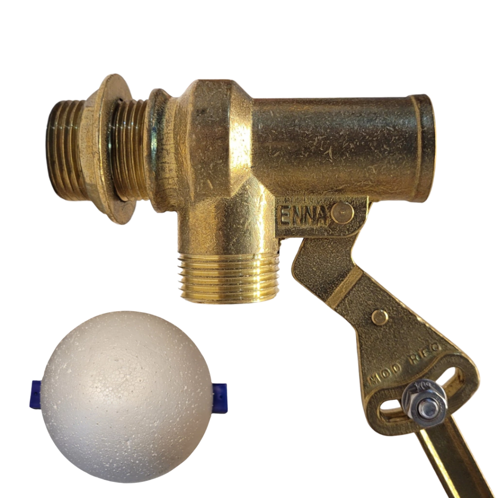Características- Marca: ENNA.- Entrada de Agua 1'.- Flotante para Alta Presión.- Flotante de Bronce para Tanque de Agua.- Asiento Cónico.- Pasaje de Agua 18mm.- Largo Total 70cm.- Completo - Incluye Boya. Diametro Boya 18cm.- Varilla Bronce Regulable. Largo Varilla 50cm.