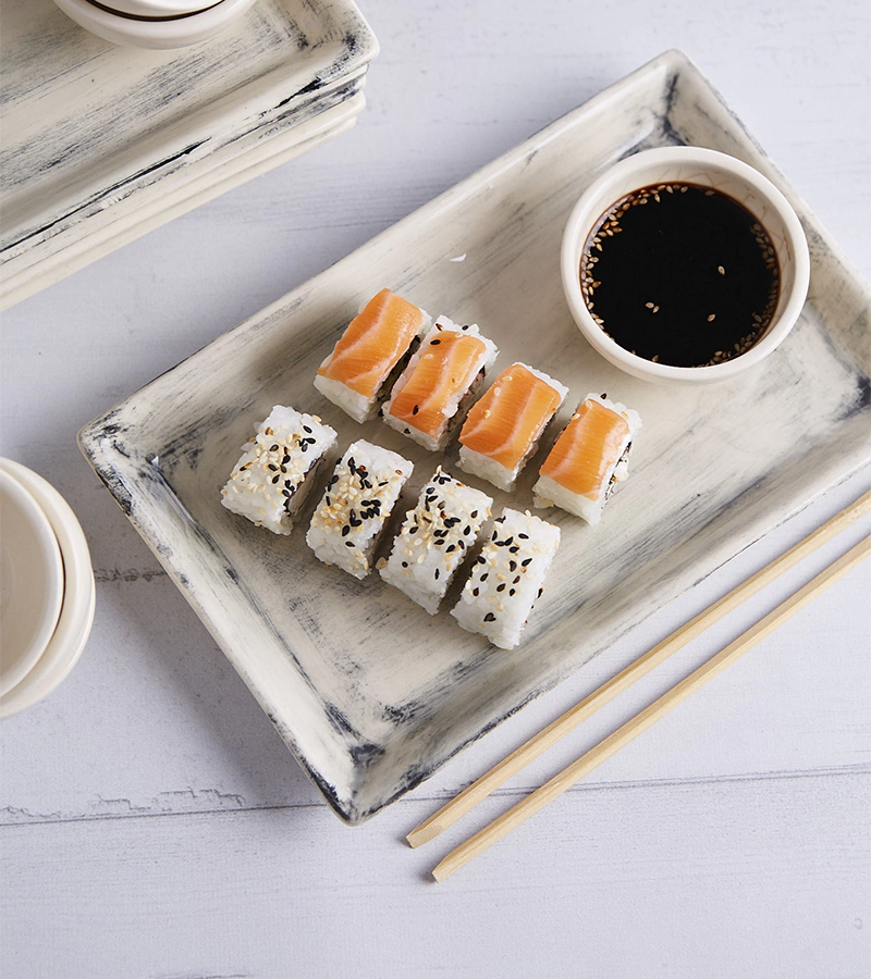 💫 Juego de 6 tablitas y salseros ideal para sushi.