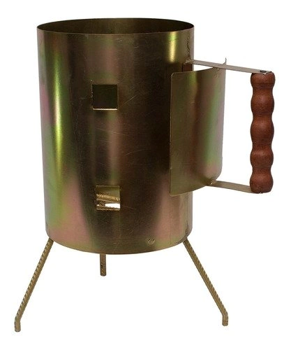 Brasero Fogonero "Diablito" o "Tacho" Medidas: - Diámetro: 21cm - Altura: 38,5cm - Altura Cilindro 27cm - Largo total: 36cm - Mango: 14cm - Material: Chapa de acero de 1 mm ---------------------------------------------------------------------------------