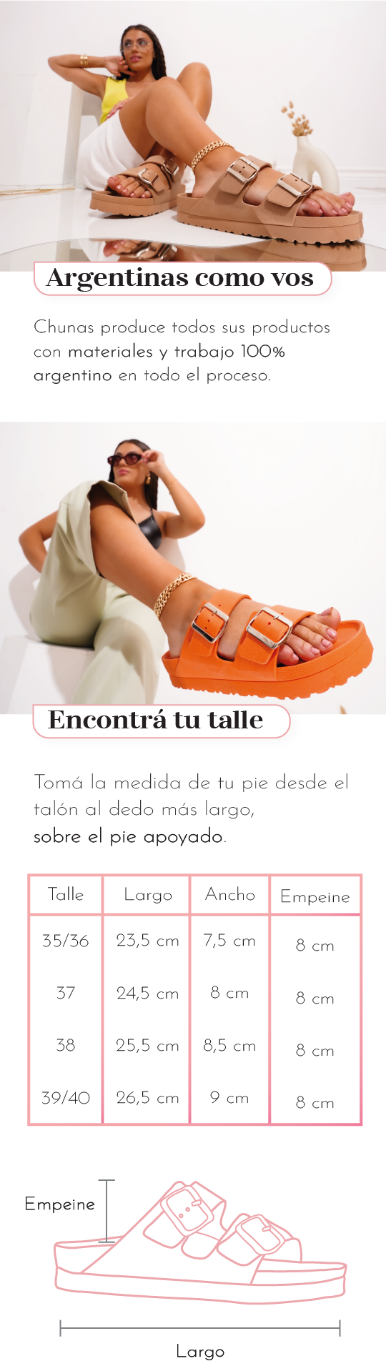 Disponible en Naranja, Rosa, Negro, Blanco, Camel y Ver