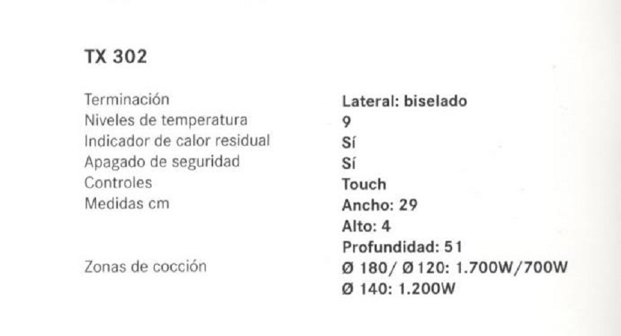 2 ZONAS DE COCCION (1700-700W-1200W)