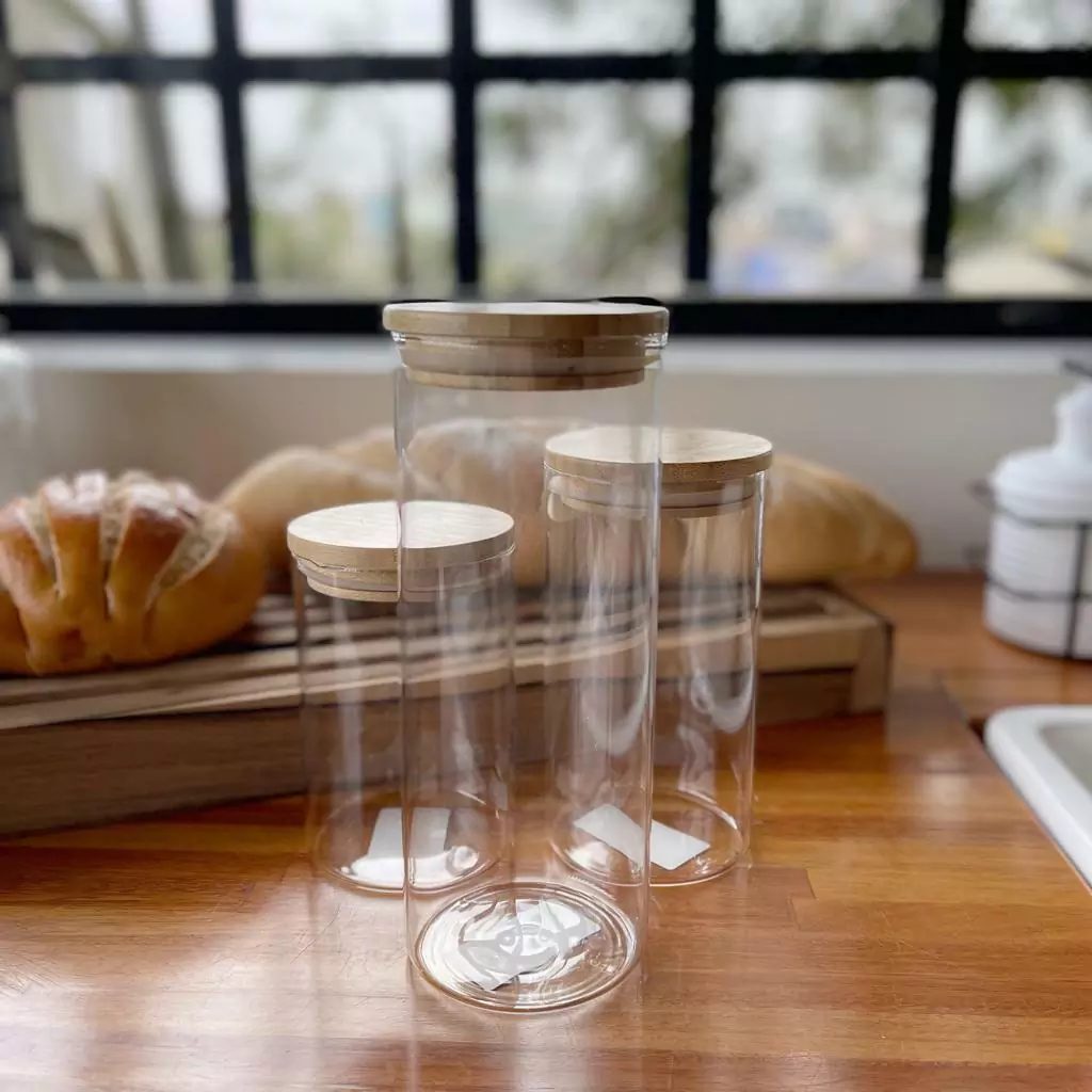 FRASCO DE VIDRIO C/TAPA BAMBOO 20,5 CM