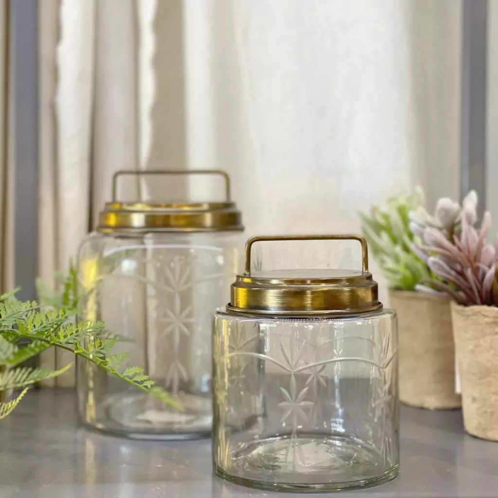 FRASCO TALLADO C/TAPA DORADA CHICO