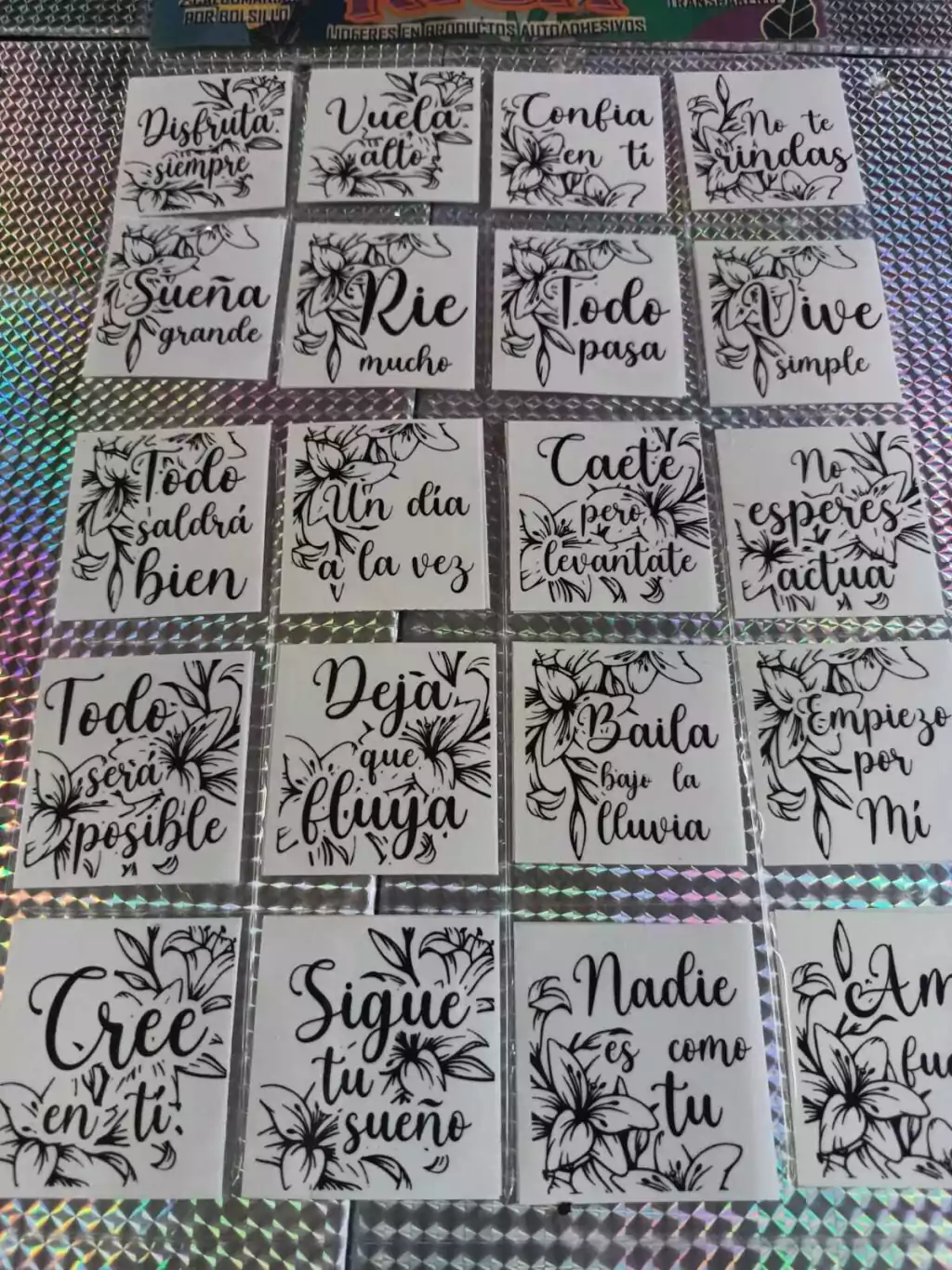 FRASES CORTAS MOTIVADORAS CON BASE TRANSPARENTE X 40