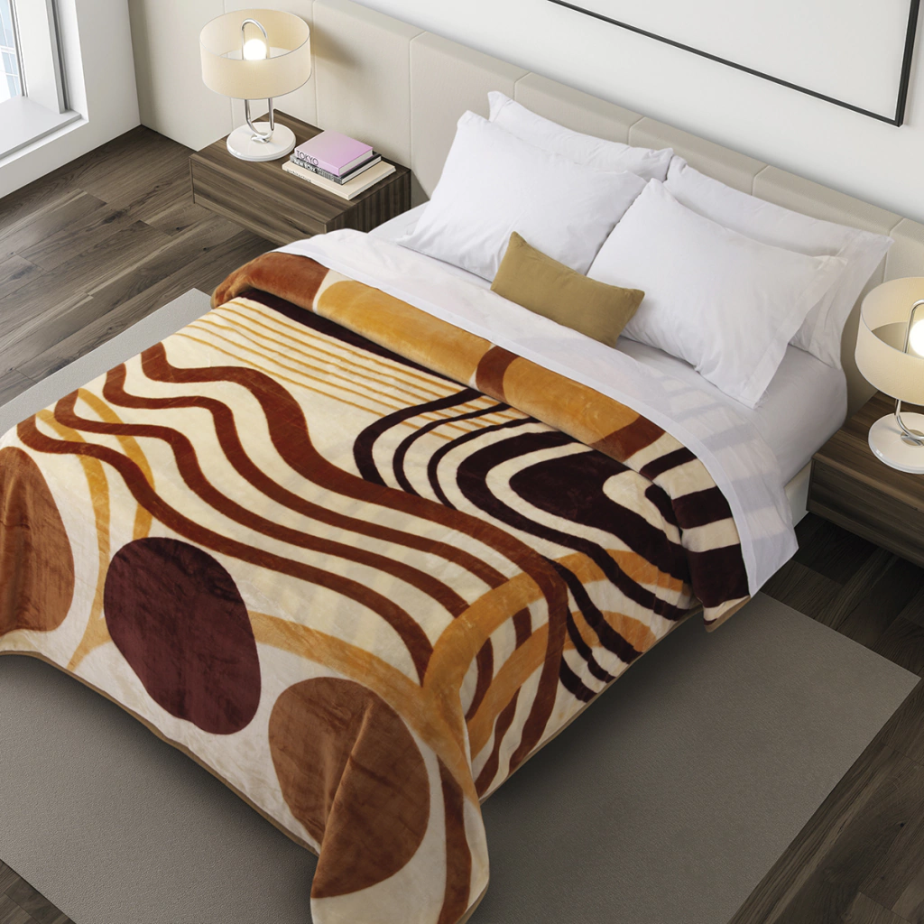 Disfruta de la suavidad y calidez de esta frazada de piel doble pesada estampada, diseñada para brindarte el máximo confort y elegancia en tu cama.