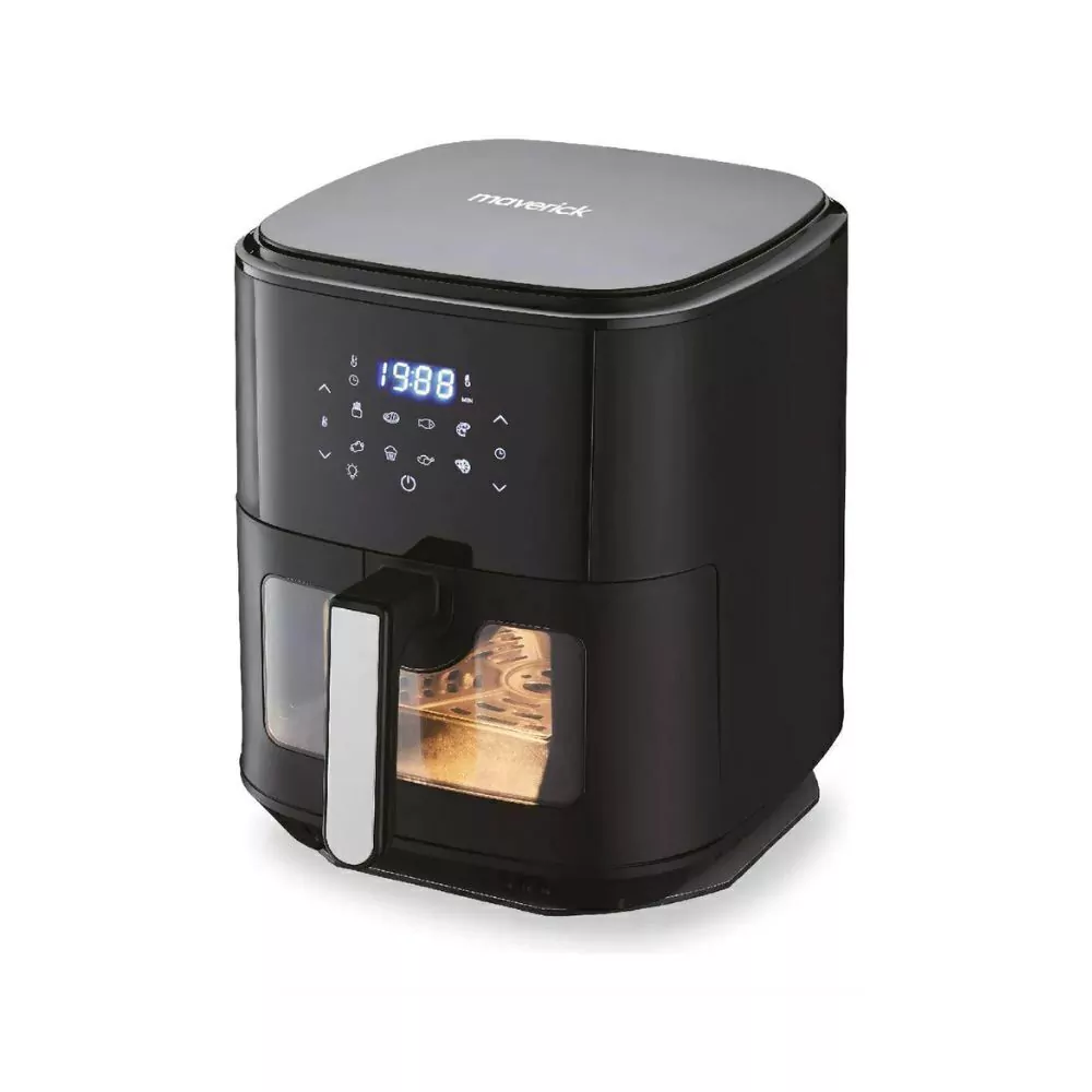 Freidora De Aire 1500W MaverickFreí, asá, horneá, la increíble freidora de aire puede hacer todo esto sin aceite con resultados excepcionales gracias a la tecnología innovadora de circulación de aire 360°.Voltaje: 220-240 [V].Potencia: 1500 [W]Capacidad: 6.5 Litros.Display LED.Apagado automático.Control de temperatura: 80-200°Control por tiempo: 60m
