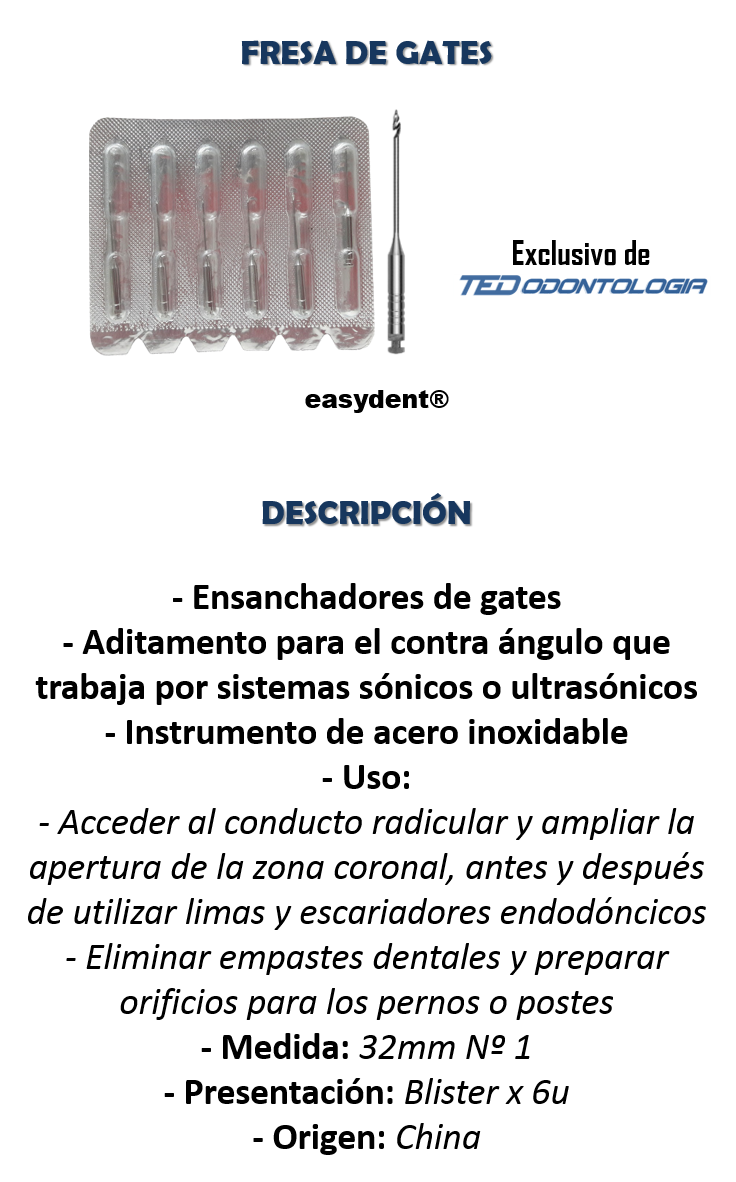 Fresa de Gates Nº 1 x 6u Easydent