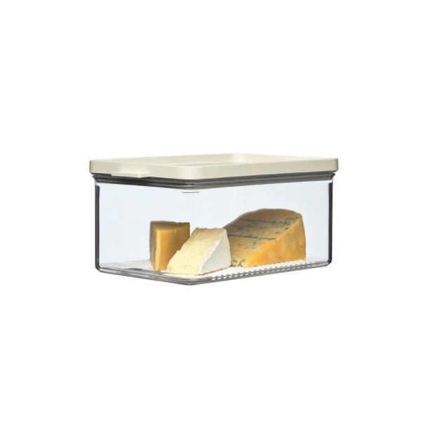 Rectangular, apilabe, con tapa hermética color Blanco. Esta línea de contenedores apilables, es de excelente calidad. Brindan un mejor aprovechamiento del espacio y son plásticos. Medidas: 23cm largo x 14,9cm ancho x 11 cm alto. Características: 2000ML, ABS, SAN, TPE, apto Lavavajilla.