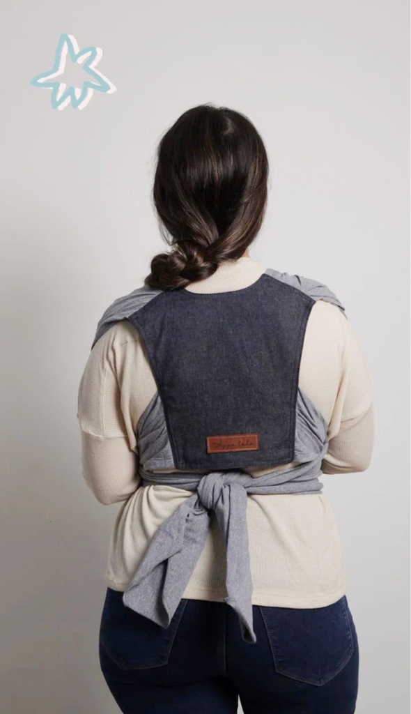 5- Para mayor sostén, colocá la banda adicional. Esta debe recubrir toda la espalda del bebé y atarse en la espalda del adulto con doble nudo.