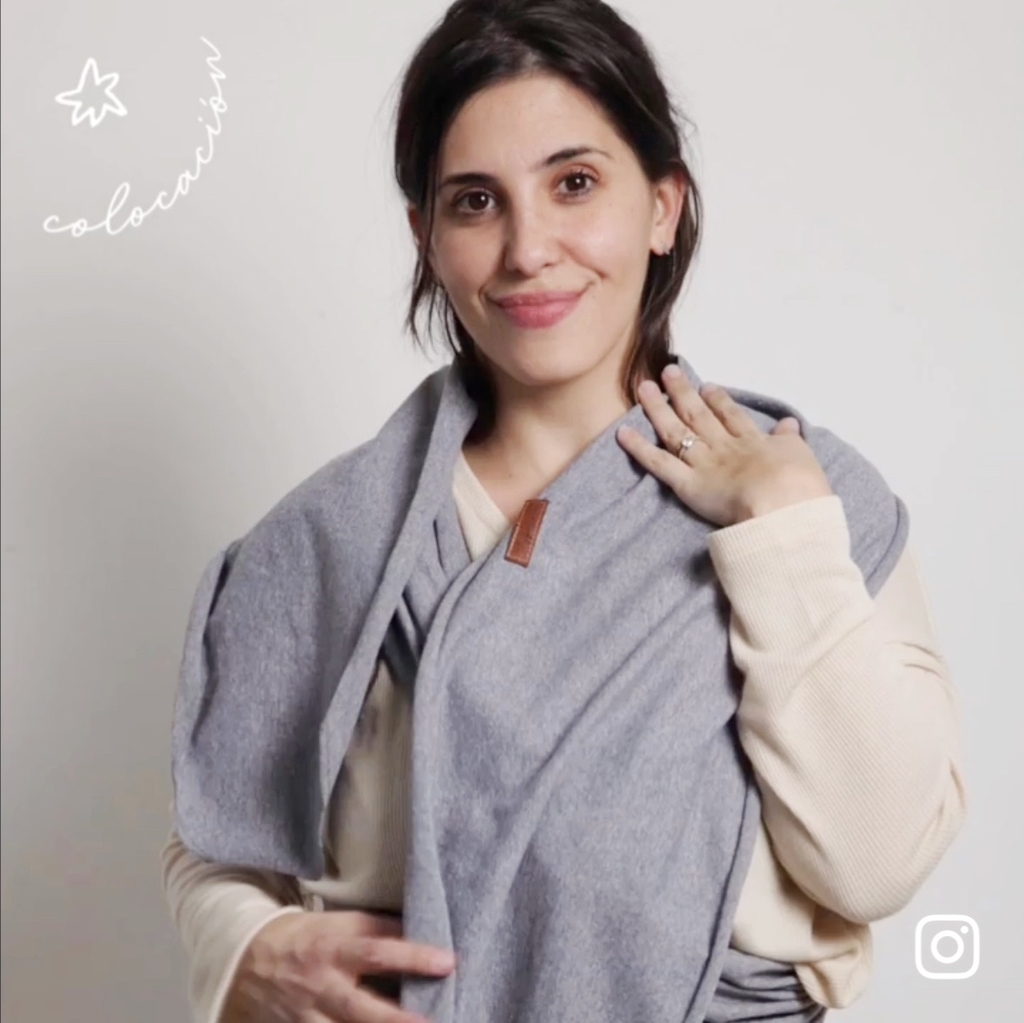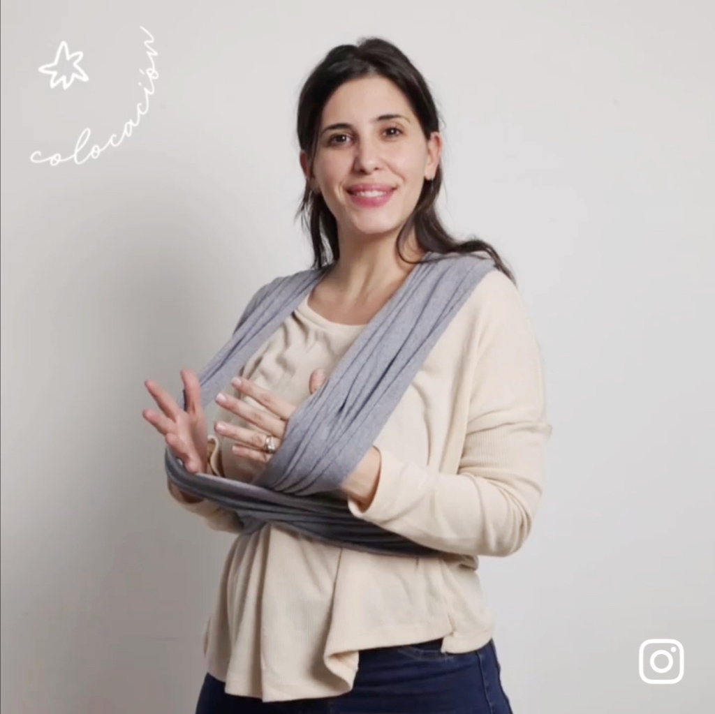 1- Ponete el Fular como una remera y bajá la parte de la espalda hasta sentirla a mitad de ella.