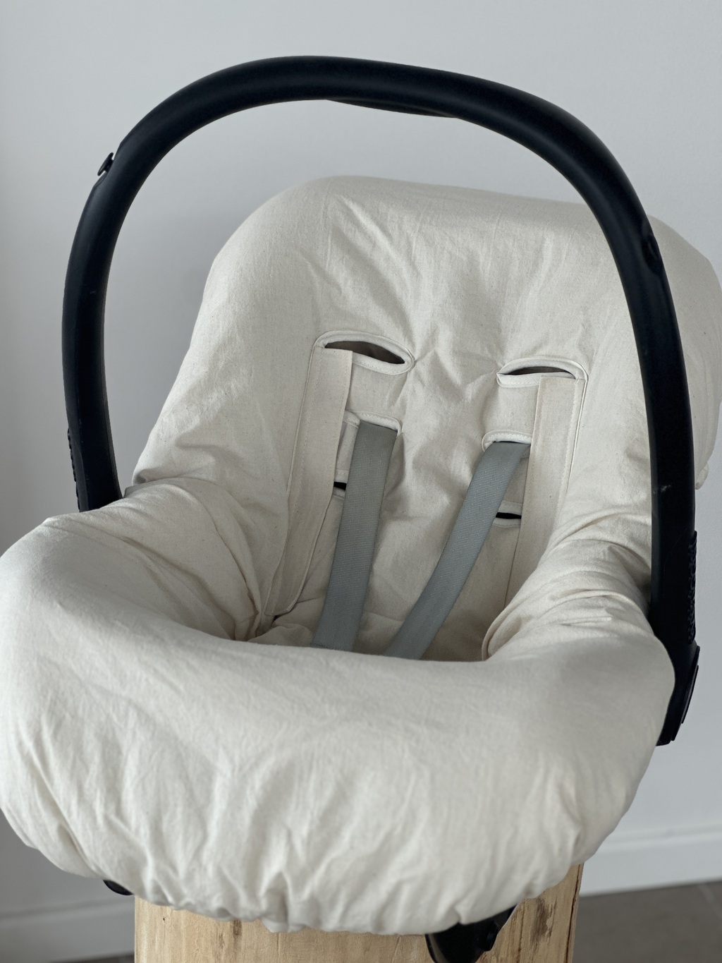 Tienen un sistema de ojales con velcro que se abren muy fácilmente para que puedas pasar las correas de seguridad sin necesidad de desabrocharlas.